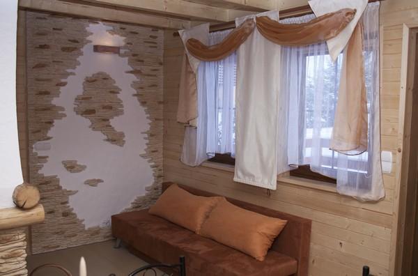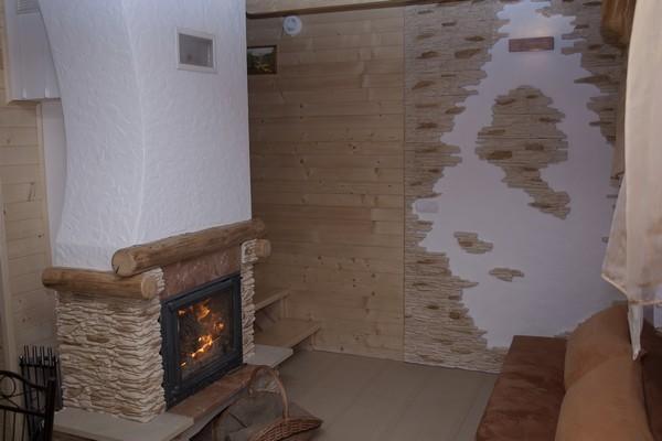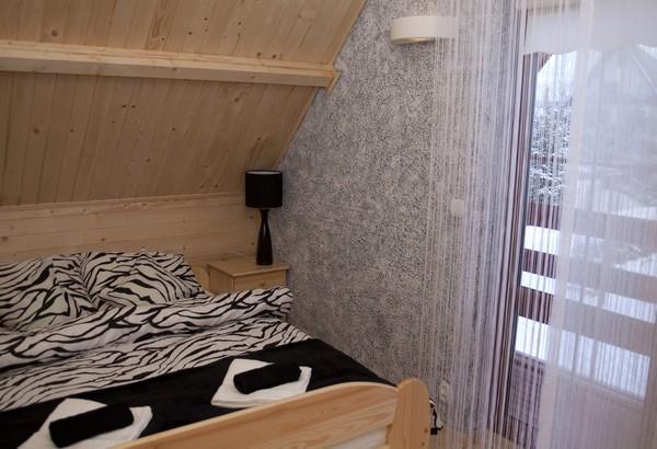 Domek, oddany do użytku w 2011 roku, jest w pełni wykończony drewnem i urządzony w nowoczesnym stylu, co tworzy przytulną atmosferę. W salonie znajdą Państwo kominek oraz telewizję satelitarną, a także dodatkowe miejsce do spania dla 2 osób. Z salonu można wyjść na taras, idealny do relaksu na świeżym powietrzu.