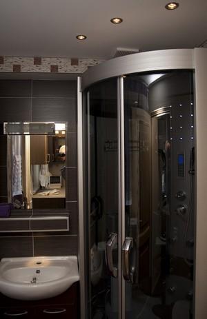 Łazienka jest nowoczesna i komfortowa, z prysznicem z hydromasażem, umywalką i toaletą. Na górnym poziomie domu znajdują się dwa oddzielne pokoje, każdy przeznaczony dla 3 osób. Jeden z pokoi posiada dodatkowo balkon, z którego można podziwiać okoliczne widoki.