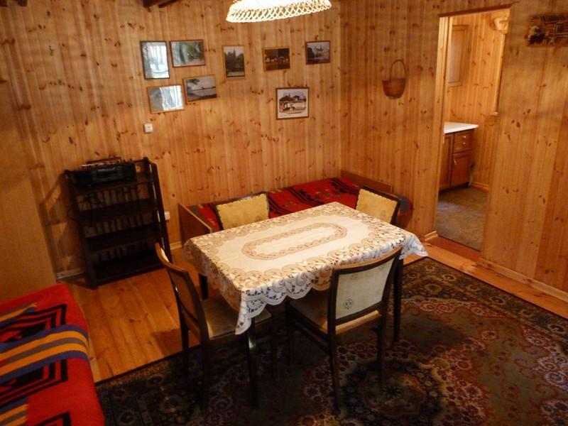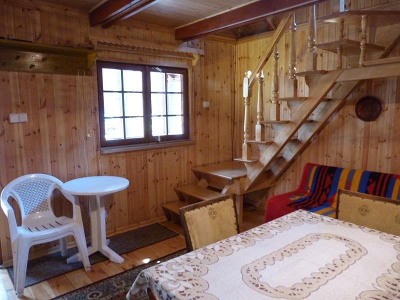 Do Państwa dyspozycji mamy domek letniskowy dla 6 osób z tarasem. Na parterze znajduje się przytulny salon, w pełni wyposażona kuchnia (lodówka, kuchenka, piekarnik, czajnik elektryczny, naczynia, garnki) oraz łazienka. Na poddaszu znajduje się sypialnia. Teren, na którym znajduje się domek “u Małgosi”, jest ogrodzony, a także istnieje możliwość zaparkowania dwóch samochodów. Przy domku jest miejsce na ognisko oraz ławy ze stołem do biesiadowania. Na wyposażeniu domku znajduje się również radio i przenośny grill.