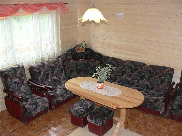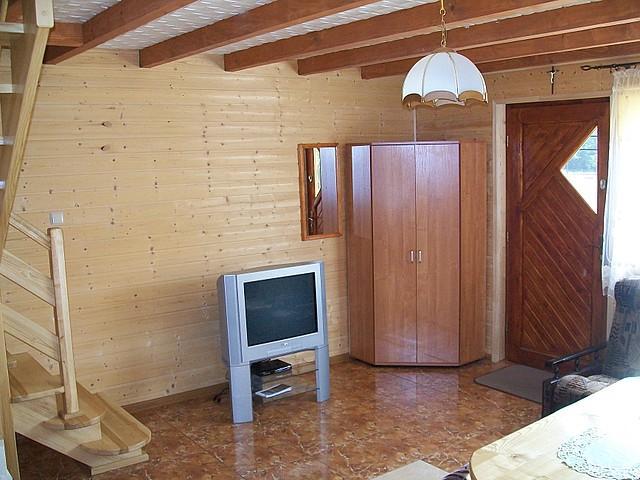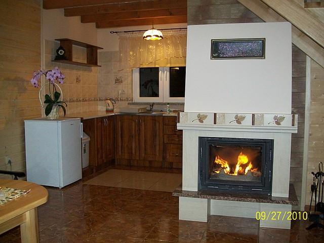 – Przestronny salon (około 25 m²) z kominkiem i telewizorem z Polsatem Cyfrowym.