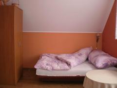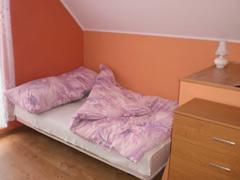 – Na poddaszu: dwie sypialnie 4-osobowe (każda z 2 kanapami 2-osobowymi i szafami) z wyjściem na balkony oraz WC.