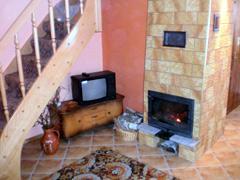 – Na parterze: salon z kominkiem i TV, jadalnia, w pełni wyposażona kuchnia (kuchenka, lodówka, ekspres do kawy, toster, naczynia, sztućce, garnki), łazienka z WC i prysznicem oraz pomieszczenie gospodarcze.