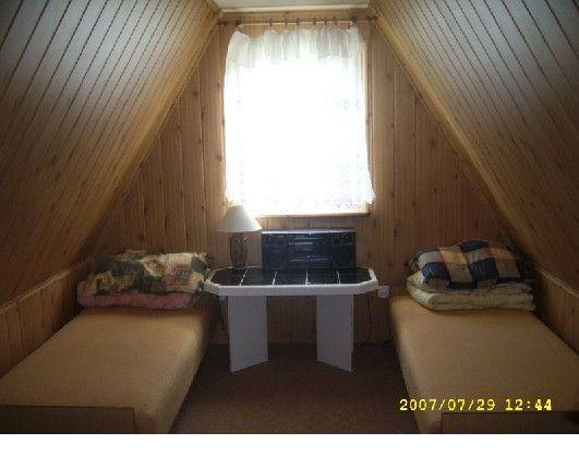 Na piętrze znajdują się dwa osobne pokoje dwuosobowe, zapewniające prywatność i wygodę.