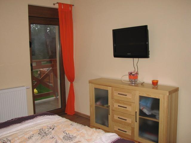 Nowo wybudowany domek wyróżnia się wysokim standardem wykończenia. W jego wnętrzu znajdziesz przytulny salon z kominkiem, dwie komfortowe sypialnie, w pełni wyposażoną kuchnię oraz dwie łazienki. Każdy pokój posiada telewizor, co zapewnia dodatkowy komfort. Dla miłośników aktywnego spędzania czasu, w garażu dostępne są stół do tenisa i piłkarzyki.