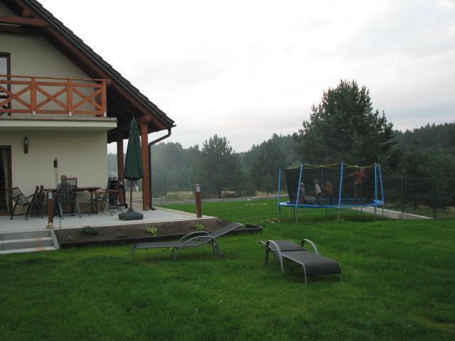 Na zewnątrz czeka na Ciebie przestronny taras, duże podwórko oraz plac zabaw, idealny dla najmłodszych gości. Wieczory można spędzić przy grillu lub ognisku, które są specjalnie przygotowane dla odwiedzających. Dla entuzjastów wodnych atrakcji dostępna jest łódka, umożliwiająca eksplorację jeziora.