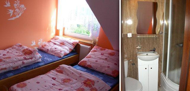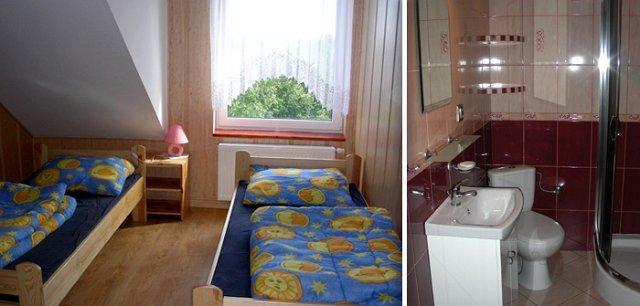 Dodatkowo oferujemy 8 komfortowo wyposażonych pokoi 2- lub 4-osobowych z telewizorem i łazienkami. Na parterze znajduje się duża jadalnia z aneksem kuchennym. W pokojach nie są dozwolone zwierzęta.