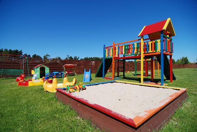– Plac zabaw z huśtawkami, piaskownicą i zamkiem drewnianym