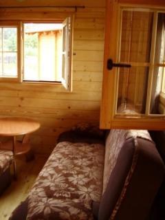 Nowe 4-osobowe domki drewniane z łazienką i wyposażonym aneksem kuchennym są dostępne do wynajęcia. Każdy domek ma prywatną posesję ogrodzoną, a do plaży można dotrzeć w ciągu 10 minut spacerem przez malowniczy las.