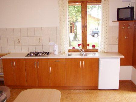 Przed każdym domkiem czeka na Was zestaw mebli drewnianych, w tym stół i siedzenia, a także grill, który pozwoli na przygotowanie pysznych posiłków na świeżym powietrzu.
