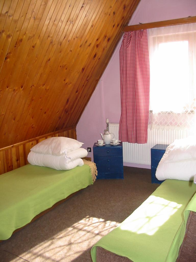 Na piętrze znajdują się również dwa pokoje, które pomieszczą cztery łóżka. Każdy pokój wyposażony jest w telewizor i radio, a z balkonu można podziwiać piękne widoki. Ponadto, na piętrze znajduje się również w pełni wyposażona kuchnia, łazienka z kabiną prysznicową i toaletą.