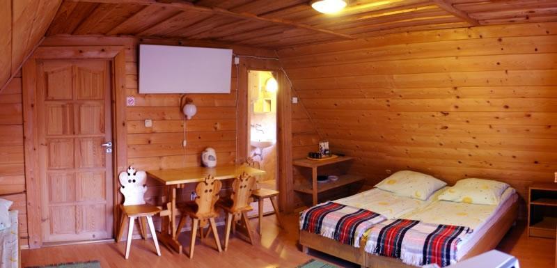 – Pokoje 2- i 3-osobowe, każdy z łazienką z natryskiem, TV, radiem, czajnikiem bezprzewodowym, talerzami, szklankami, sztućcami, dostępem do lodówki i kuchenki mikrofalowej oraz bezprzewodowym Internetem. Wszystkie pokoje urządzone są w stylu góralskim, w drewnie.