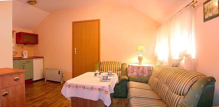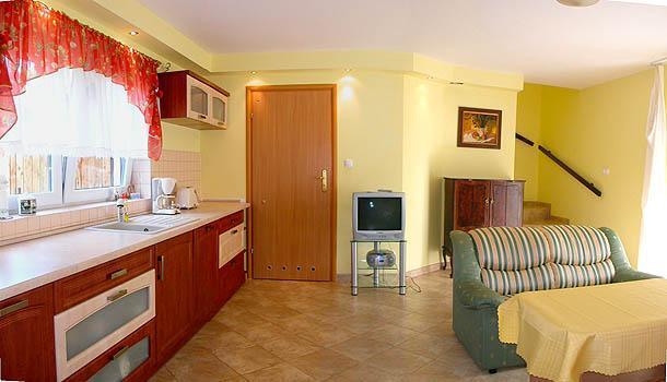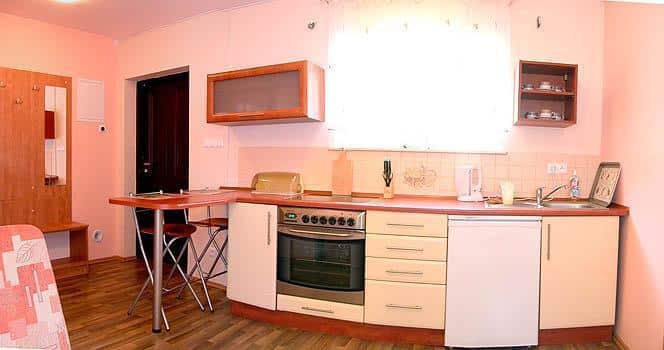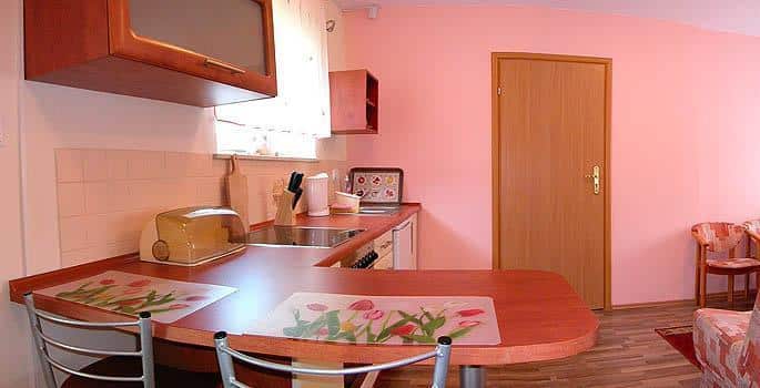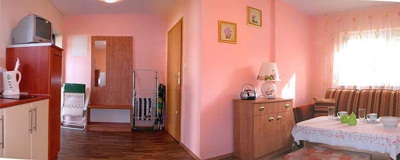 Nasze apartamenty o powierzchni 40 m² oferują wygodę i funkcjonalność. Każdy z nich składa się z dwóch pokoi, w pełni wyposażonego aneksu kuchennego oraz balkonu (w przypadku apartamentów na pierwszym piętrze). W apartamentach znajdą Państwo telewizor satelitarny, lodówkę, klimatyzację, ogrzewanie podłogowe oraz miejsce na grill. Również tutaj czeka na Państwa ogrodzony parking i sprzęt plażowy.