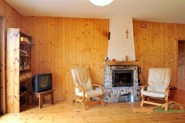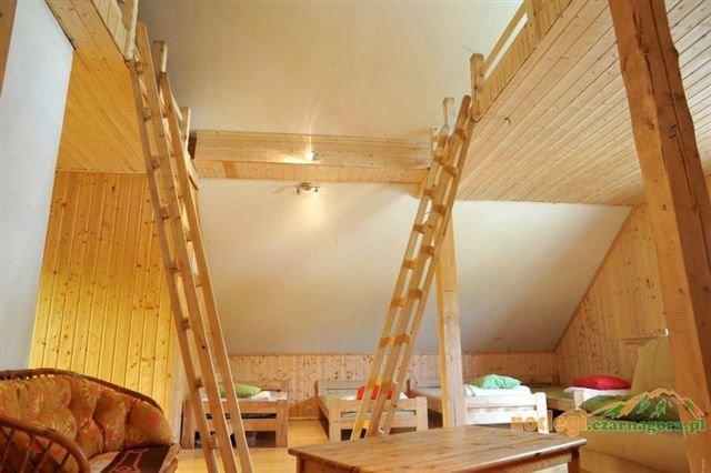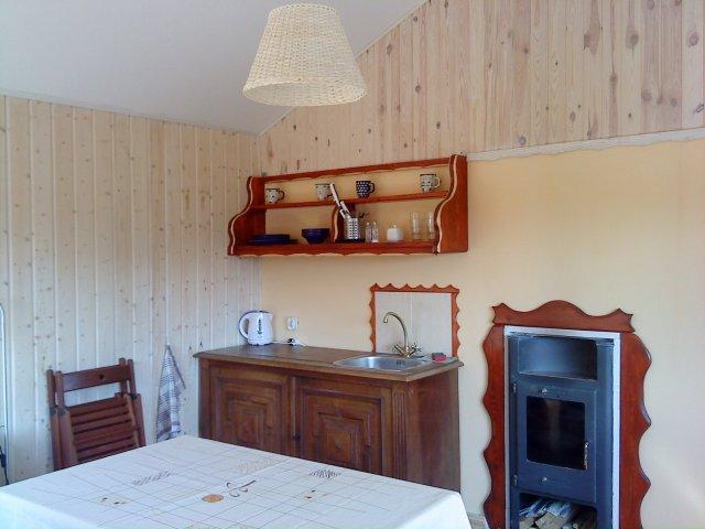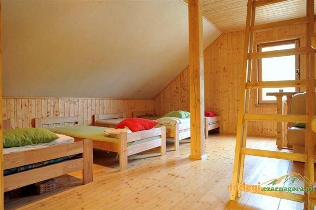 Duży dom oferuje 12 miejsc noclegowych: jeden pokój dwuosobowy na parterze i wspólną część sypialną na piętrze z 10 pojedynczymi łóżkami. Dodatkowe miejsca do spania znajdują się na antresoli. W domu jest także przestronny salon z kominkiem oraz dwie łazienki.