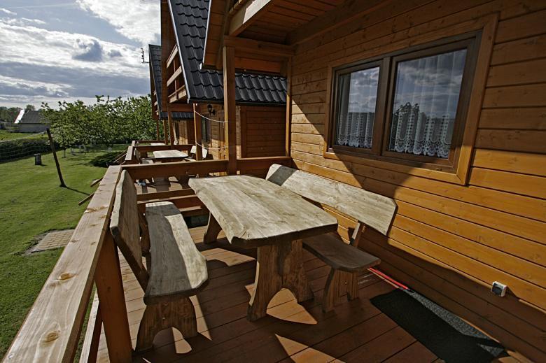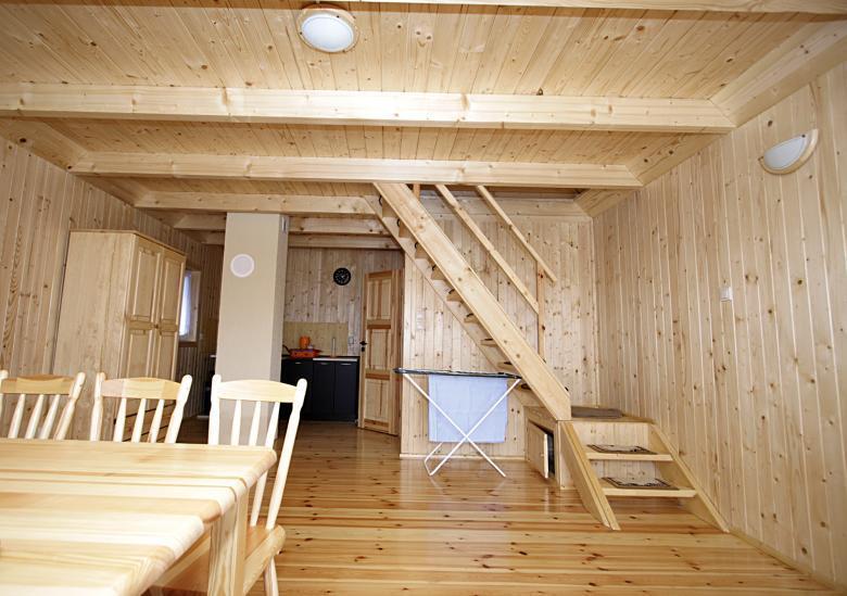 Na parterze każdego domku znajduje się przytulny salon z kuchnią oraz łazienką wyposażoną w kabinę prysznicową. Poddasze oferuje dwie komfortowe, dwuosobowe sypialnie. Teren wokół domków jest ogrodzony, co zapewnia bezpieczeństwo i umożliwia wygodne parkowanie samochodu. Po wcześniejszym uzgodnieniu, mile widziani są również Państwa czworonożni przyjaciele.