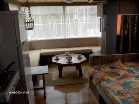 – aneksu kuchennego z kuchenką gazową, czajnikiem elektrycznym, patelnią, garnkami i lodówką.