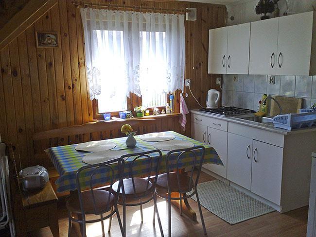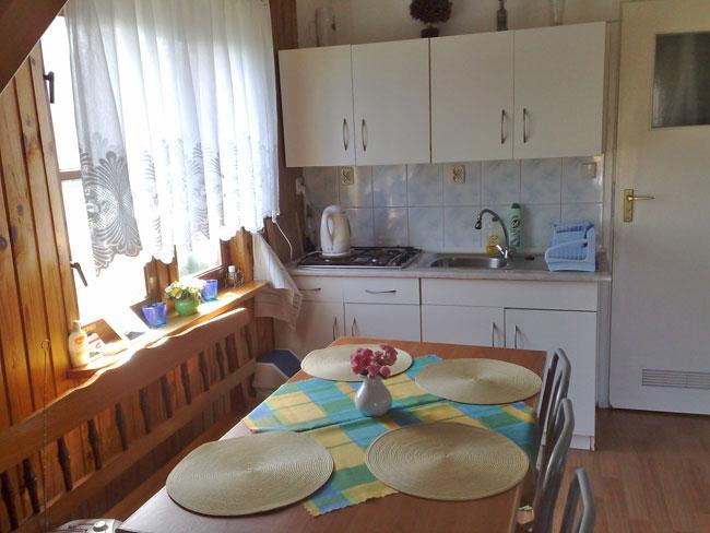 – Parter: w pełni wyposażona kuchnia, łazienka oraz pokój z dwoma łóżkami.