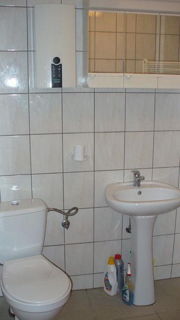– Parter: przestronny pokój dzienny z aneksem kuchennym i telewizorem oraz łazienka z natryskiem.