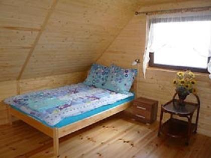 – Dwie sypialnie na piętrze (poddaszu) dla 2-3 osób każda, z widokiem na jezioro, wyposażone w pojedyncze i dwuosobowe łóżka.