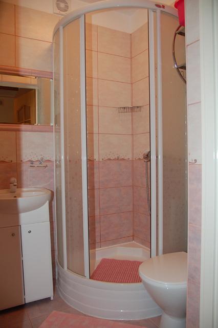 – Łazienka z kabiną prysznicową, umywalką i WC