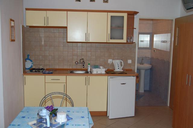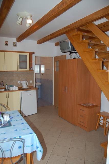 – Pokój dzienny zintegrowany z w pełni wyposażoną kuchnią (lodówka, komplet garnków, naczynia, sztućce, czajnik, 2-palnikowa kuchenka)
