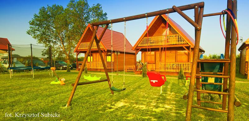 Przed domkami znajduje się przestronny teren o powierzchni 600 m², który jest idealnym miejscem do gier, zabaw i biesiad na świeżym powietrzu.