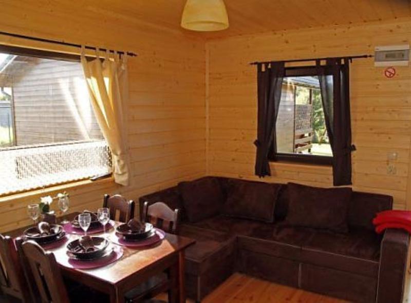 – 4 domki dla 4 osób (30 m²): jedna sypialnia, salon z aneksem kuchennym, łazienka,