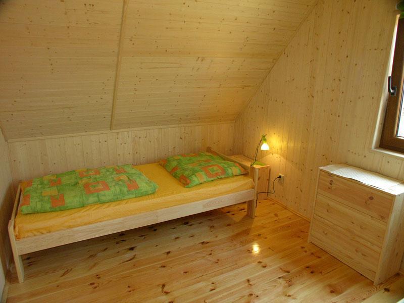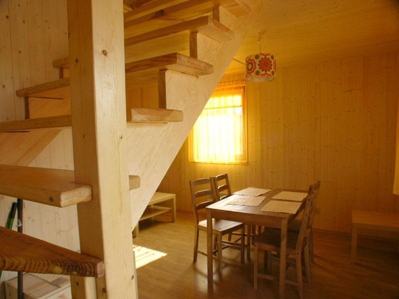 Na parterze domku znajduje się przestronny salon wyposażony w telewizję satelitarną, wygodną kanapę, stół z krzesłami oraz aneks kuchenny. Do dyspozycji gości jest także łazienka wyposażona w prysznic, toaletę i umywalkę. Na piętrze znajdują się dwie przytulne sypialnie, gwarantujące komfortowy wypoczynek.