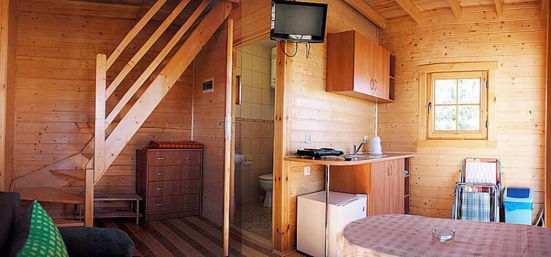 Zapraszamy do naszych nowoczesnych, 5-osobowych domków drewnianych, idealnych na rodzinny wypoczynek. Każdy domek składa się z: