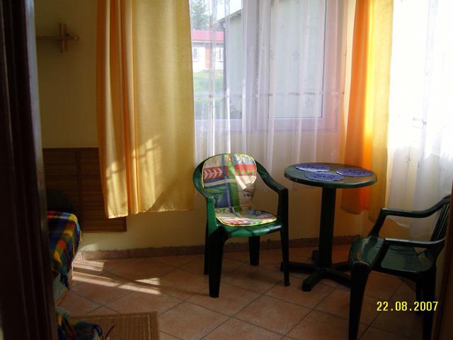 – mały pokój z tapczanem, wersalką, szafą, stołem i krzesłami,