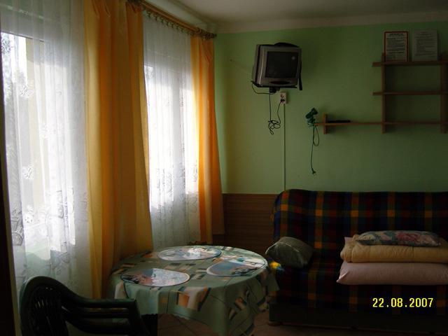 – duży pokój z dwoma wersalkami, stołem, krzesłami, szafą i telewizorem,