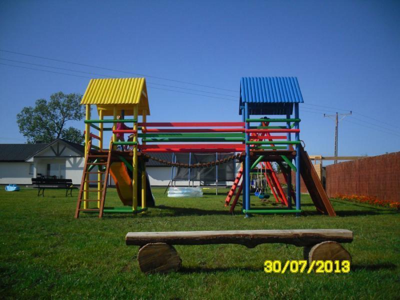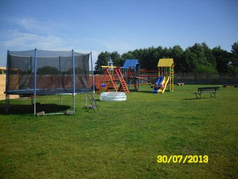 Nasz ośrodek położony jest na malowniczym terenie o powierzchni niespełna 4000 m², z widokiem na łąki, pola, staw i brzozowy zagajnik. Cały teren jest ogrodzony, co zapewnia bezpieczeństwo i komfort. Do dyspozycji gości jest bezpłatny parking oraz plac zabaw dla dzieci z trampoliną, huśtawkami, zjeżdżalniami, mostkiem, mini ścianką wspinaczkową i domkiem ogrodowym. Oferujemy także miejsce na ognisko oraz możliwość kontaktu ze zwierzętami domowymi, takimi jak kury i króliki.
