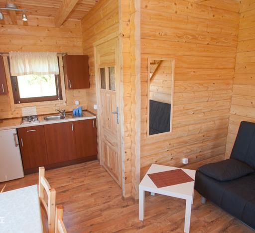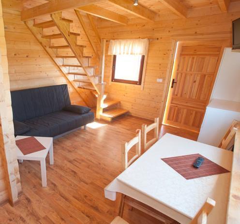 Domki “Sawinda” zapewniają wszystko, czego potrzeba do udanego wypoczynku. Na parterze znajduje się przestronny pokój dzienny z dwuosobową sofą, telewizorem, stołem, krzesłami, szafą i komodą. Aneks kuchenny jest w pełni wyposażony, oferując lodówkę, płytę gazową i zestaw naczyń. Na tym poziomie znajduje się też łazienka z kabiną prysznicową.