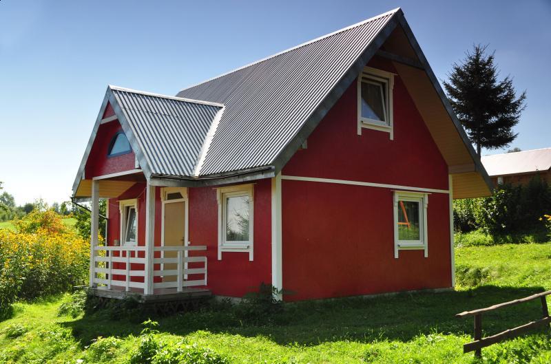 Zapraszamy do naszych urokliwych domków, położonych w malowniczym zakątku Bieszczad, z dala od zgiełku miasta. Nasz obiekt znajduje się około 160 metrów od głównej szosy, co gwarantuje ciszę i spokój. Do Jeziora Solińskiego oraz hodowli pstrągów dzieli nas jedynie 500 metrów, a do lasu i najbliższego sklepu spożywczego, baru oraz Sanktuarium Maryjnego – zaledwie 250 metrów.