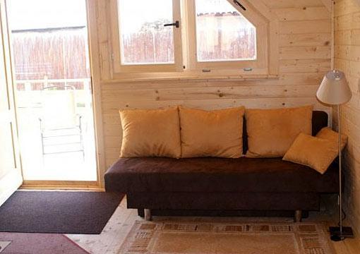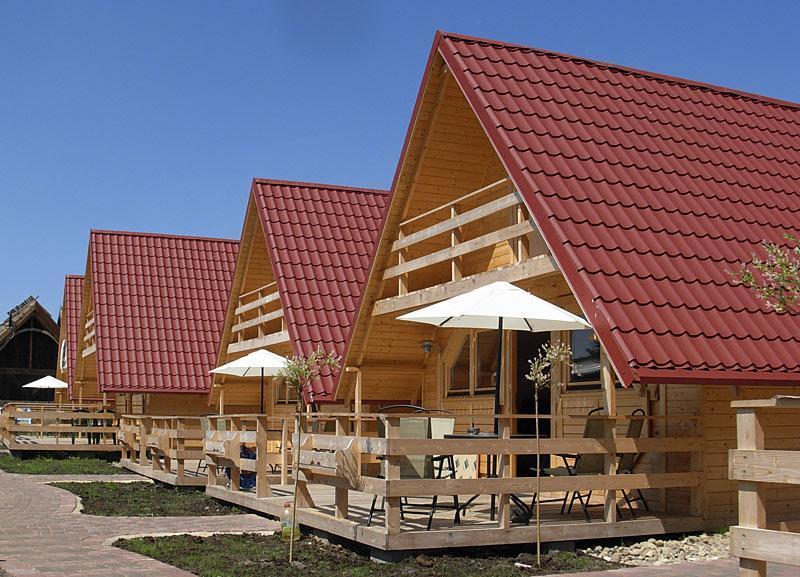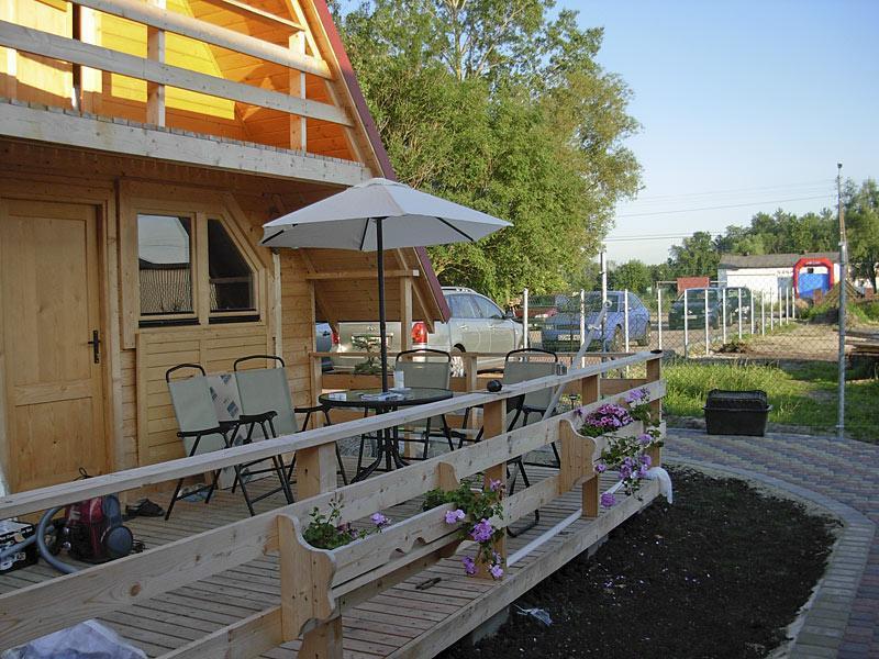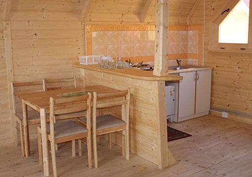 Na terenie o powierzchni 3300 m2 znajduje się 11 domków, każdy o powierzchni około 60 m2, które pomieszczą od 5 do 6 osób. Domki wyposażone są w: