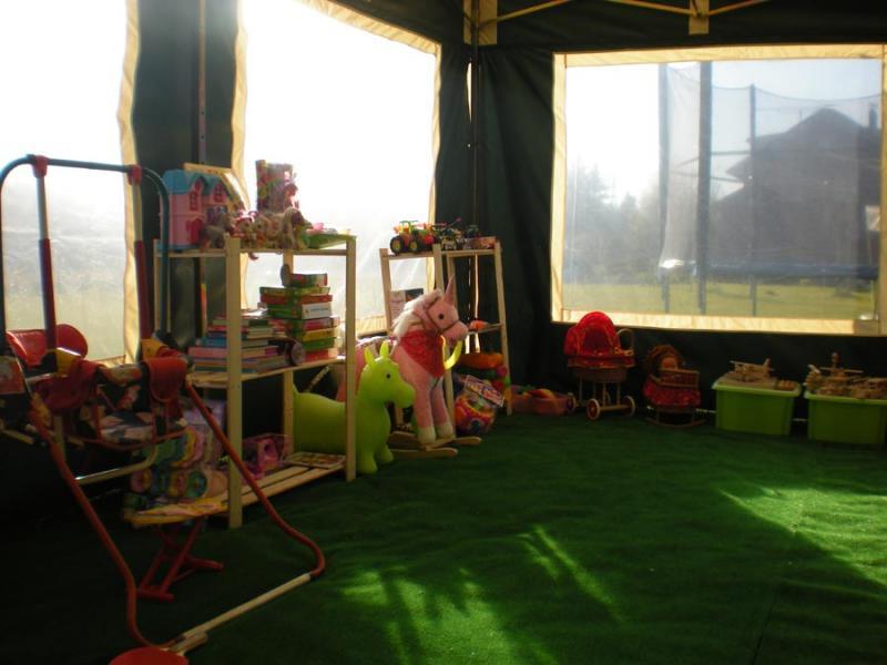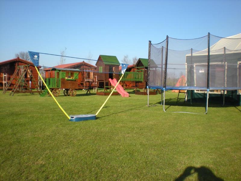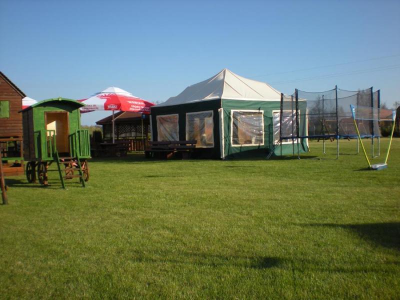 Dla bezpieczeństwa teren obiektu jest ogrodzony. Na miejscu znajdą Państwo również miejsce na grill i ognisko, parking, plac zabaw dla dzieci oraz boisko. W tym roku przygotowaliśmy także nową atrakcję – zadaszony namiot z miejscem do zabaw i gier, gdzie można znaleźć książki, gry, zabawki, stół do ping-ponga i piłkarzyki.