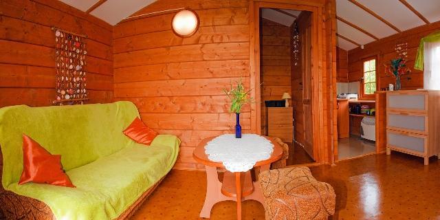 – Salon dzienny z wygodnym 2-osobowym łóżkiem i telewizorem,