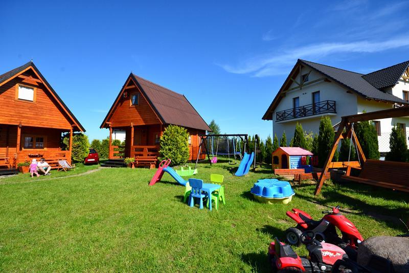 Na terenie ośrodka przygotowaliśmy wiele atrakcji, które umilą czas zarówno dorosłym, jak i dzieciom. Dla najmłodszych mamy plac zabaw z piaskownicą, ślizgawką, huśtawkami i trampoliną. Dla miłośników sportu dostępne jest boisko do siatkówki i koszykówki z piłkami. Cały teren jest ogrodzony i bezpieczny, a dla każdego domku przewidziano dwa miejsca parkingowe.