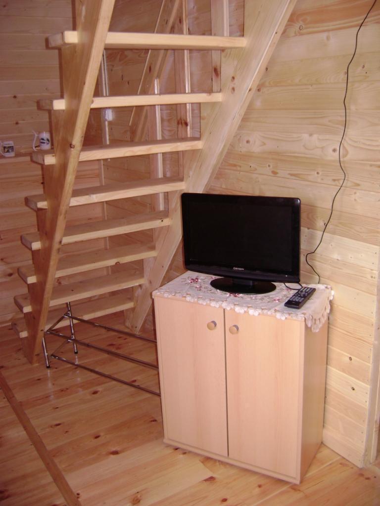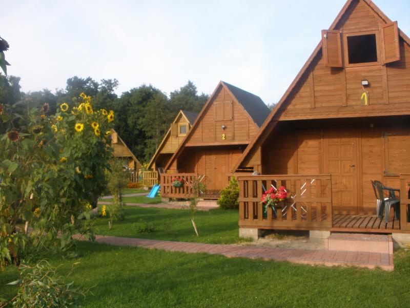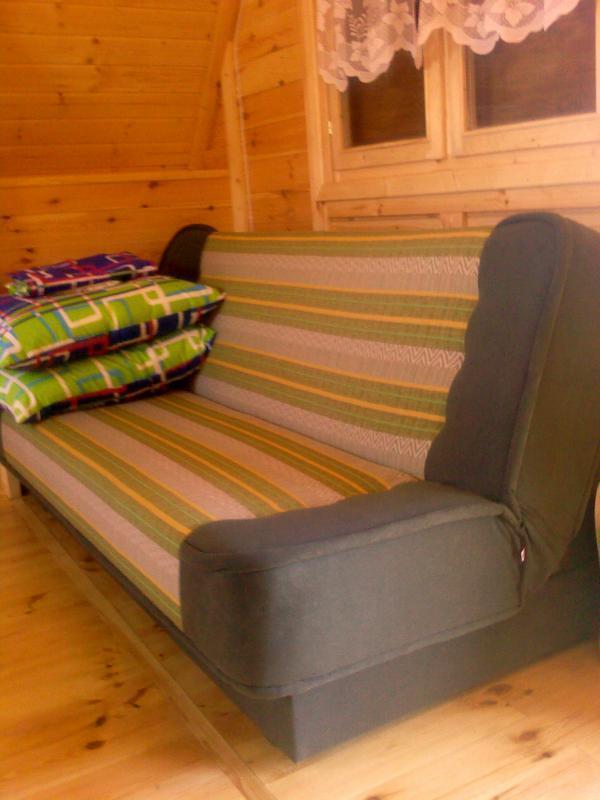 Do Państwa dyspozycji oddajemy komfortowe, drewniane domki letniskowe, w których może zamieszkać do 5 osób. Każdy domek wyposażony jest w:
