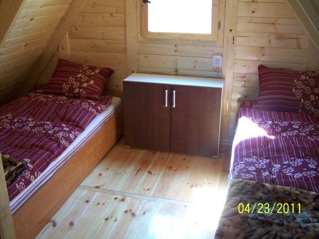 – PIĘTRO: 3 jednoosobowe łóżka, szafka.
