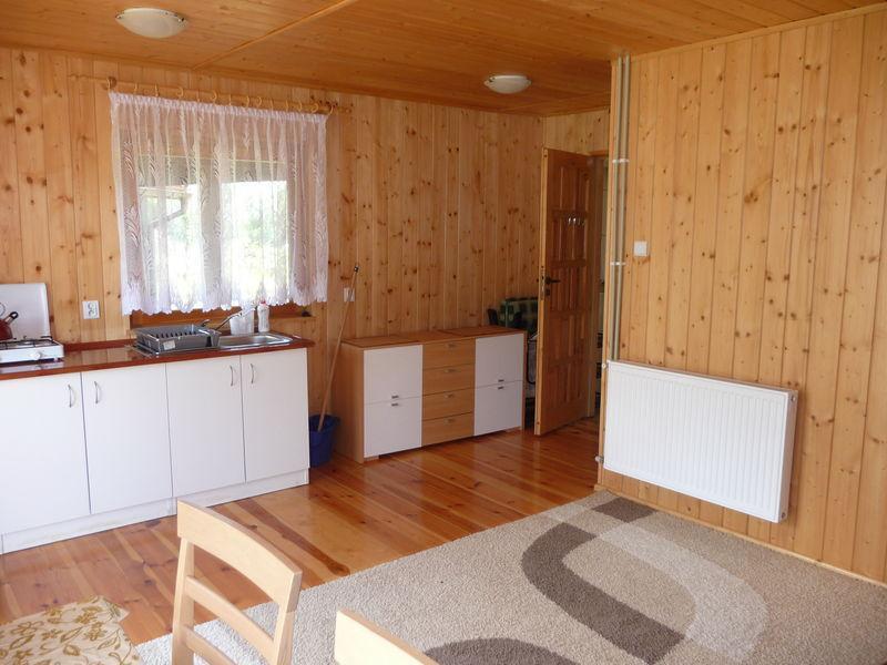 Oferujemy drewniane domki letniskowe 2-pokojowe, idealne dla 4-5 osób. Domki są w pełni wyposażone, w tym: