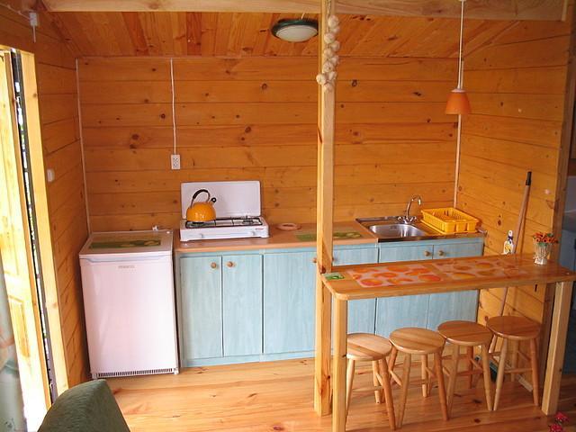 W naszych domkach znajdziecie Państwo aneks kuchenny z pełnym wyposażeniem, lodówkę, telewizor oraz łazienkę. Dodatkowo do dyspozycji gości mamy grill, plac zabaw oraz parking.