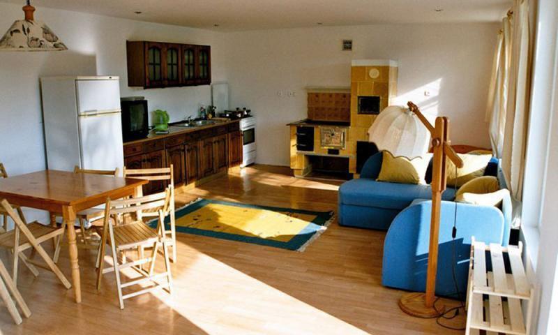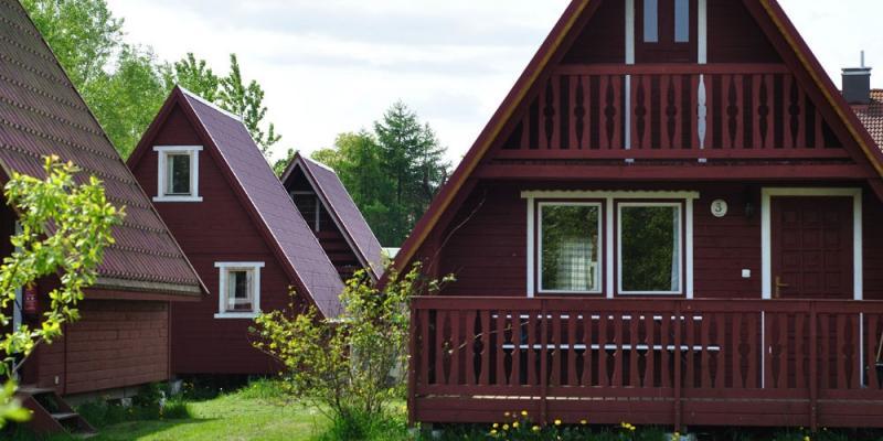 Do Państwa dyspozycji oddajemy komfortowe, dwupoziomowe domki, idealne dla 6 osób. Każdy domek posiada balkon i przestronny taras o powierzchni 56 m². Na terenie znajduje się 13 drewnianych domków, ustawionych w trzech rzędach. Domki wykonane są z drewna sosnowego, pokrytego szwedzką farbą Osmo, bazującą na olejach roślinnych i woskach pszczelich. Przy każdym domku znajduje się miejsce parkingowe.