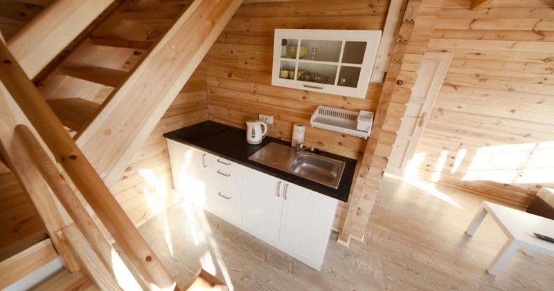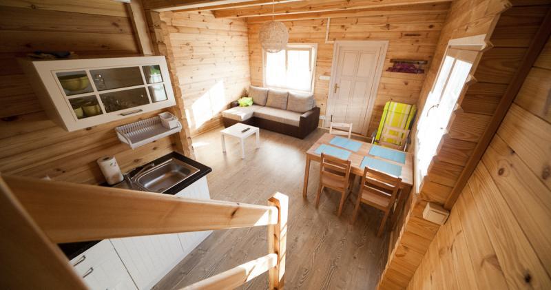 Wnętrze każdego domku zostało zaprojektowane z myślą o komforcie naszych gości. W środku znajdą Państwo: