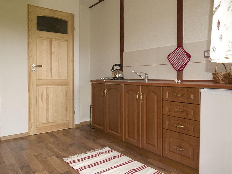 – naczynia, czajnik, kuchnię gazową i lodówkę,