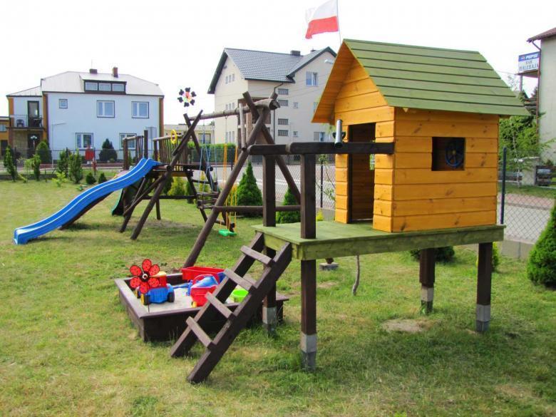 – Dla dzieci: mini plac zabaw (huśtawka ze zjeżdżalnią, piaskownica, bujak, stolik z krzesełkami)