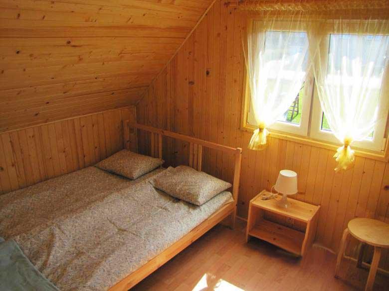 – Na górze: dwie zamykane sypialnie (jedna z łóżkiem podwójnym i jednoosobowym, druga z trzema łóżkami jednoosobowymi)