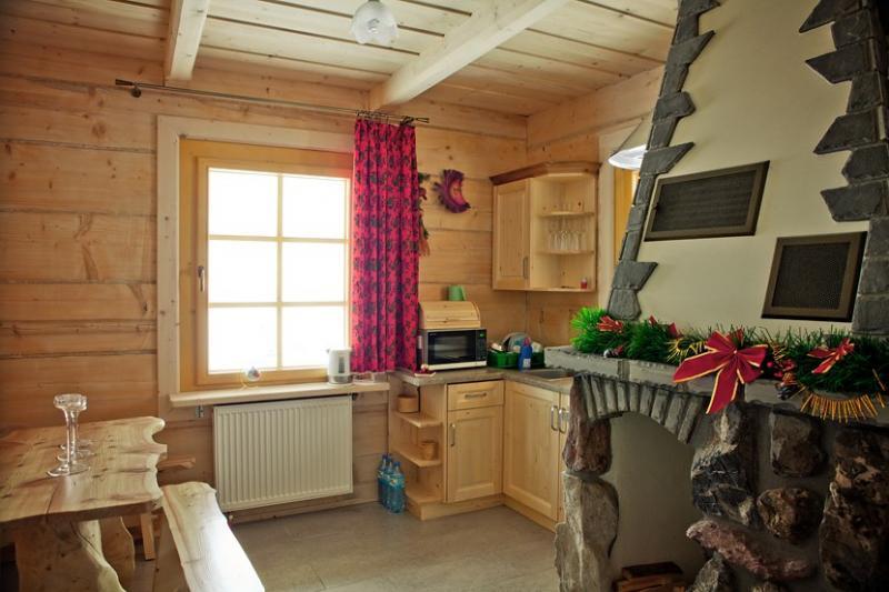 Domek jest dwupoziomowy. Na piętrze znajdują się trzy przytulne sypialnie oraz wspólna łazienka z prysznicem z hydromasażem. Parter oferuje dodatkową, dwuosobową sypialnię, przestronny salon w stylu góralskim z kominkiem, w pełni wyposażoną kuchnię i łazienkę. W cieplejsze dni zapraszamy na taras, skąd można podziwiać piękno Tatr i okolicy.