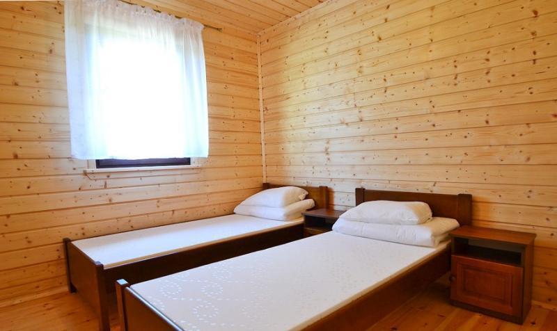 Każdy domek pomieści do 6 lub 7 osób. Wnętrza składają się z dwóch sypialni: jedna z łożem małżeńskim, a druga z dwoma łóżkami pojedynczymi lub łóżkiem piętrowym dla trzech osób. W salonie znajduje się wygodna, rozkładana wersalka.
