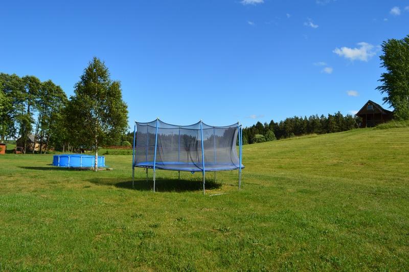 Domki są 4-5 i 6-8 osobowe w pełni wyposażone: w kuchenkę, lodówkę, naczynia, tv (DVB-T), łazienki z prysznicami, internet WI-FI. Do dyspozycji gości jest grill, miejsce na ognisko nad stawem, sprzęt wędkarski, boisko do piłki nożnej i siatkówki, piaskownica, huśtawka, trampolina, łódka oraz 4 rowery bez żadnych dodatkowych opłat.