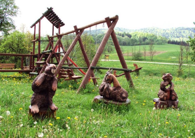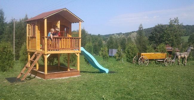 – Plac zabaw z domkiem, piaskownicą i zjeżdżalnią
